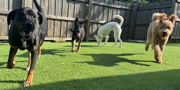 This service provides 8 hours of care. We will feed them, care for them, as well as allot large spans of time for outdoor play with many other socialized dogs. They will be played-out and ready for bed as soon as you pick them up at the end of their stay.
